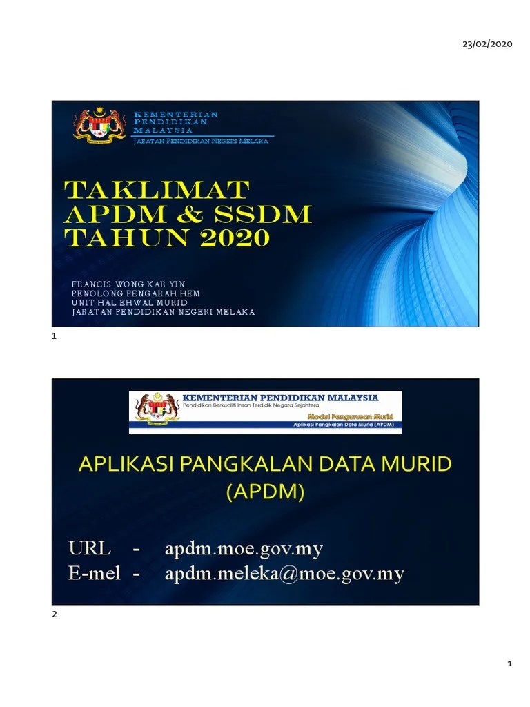 Apdm atau nama penuhnya aplikasi pangkalan data murid merupakan laman web yang sering dibuka oleh guru. Laman ini diwujudkan sebagai saluran maklumat dan tempat perbincangan berkenaan system apdm. Dual language programme (dlp) kursus dalam talian untuk guru bahasa melayu, sains dan matematik. Aplikasi pangkalan data murid iaitu apdm merupakan satu aplikasi atas talian yang diwujudkan oleh kementerian pendidikan malaysia (kpm) yang bertujuan sebagai satu sistem untuk mengisi dan menyimpan maklumat berkenaan murid. Aplikasi pangkalan data murid (apdm) merupakan sebuah servis atas talian yang membenarkan pengguna android untuk akses masuk dan membuat semakan data.