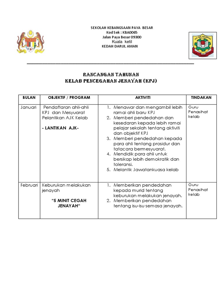 Kelab pencegahan jenayah ialah kelab yang ditubuhkan di semua sekolah rendah dan sekolah menengah kerajaan merujuk kepada surat pekeliling ikhtisas 4. Mendidik para ahli untuk bersikap lebih demokratik dan toleransi. Selamat datang ke blog ahli kelab pencegahan jenayah. Latar belakang kpj kelab pencegahan jenayah ialah kelab yang ditubuhkan di semua sekolah rendah dan sekolah menengah kerajaan merujuk kepada 4. Minit mesyuarat guru penasihat kelab pencegahan jenayah kali pertama.