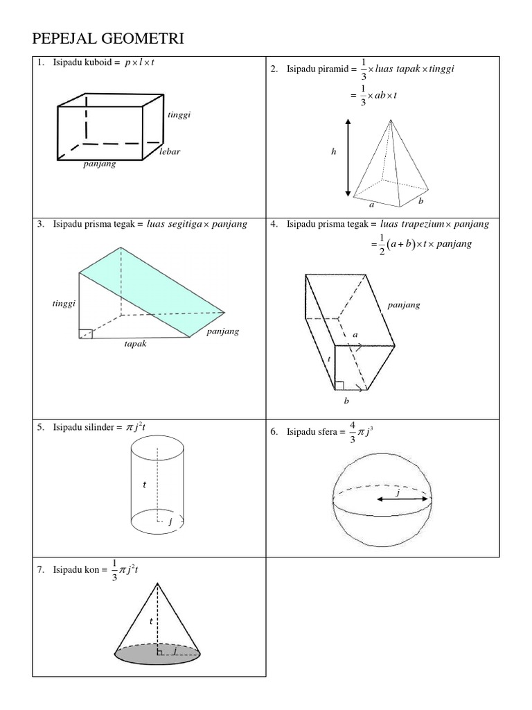 Kelas belajar matematik secara percuma di www.vtutor.cikguromie.net Isipadu air ialah 3 128 cm 12 cm 20 cm 8cm 12000 cm ÷ 0. Oct 11, 2012 · bab 12 pepejal geometri 1. Bentuk geometri tiga dimensi other contents: Mar 08, 2016 · geometri pepejal(iii) i.gabungan 1.