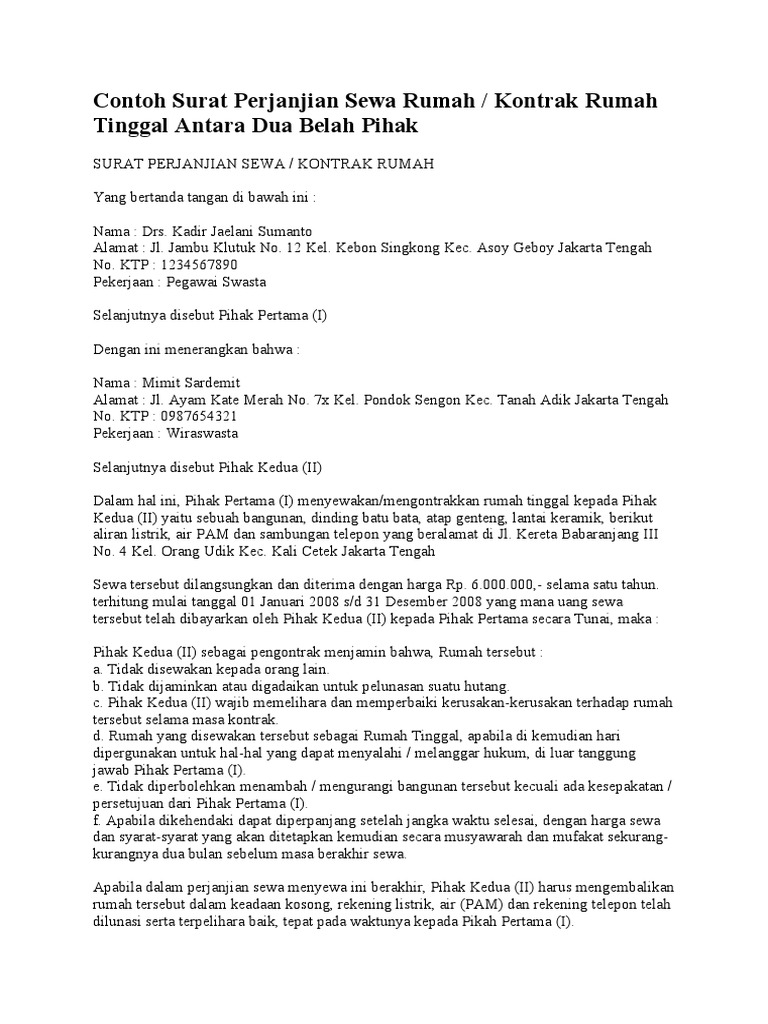 Acuan pembuatan surat perjanjian sewa rumah ini memiliki poin penting yang harus tercantum dalam surat tersebut. Harga sewa sebesar rp a. Perlu melibatkan nama diantara tuan rumah dan penyewa serta tarikh perjanjian. Penyewa membayar kepada tuan rumah wang sejumlah rm2,400.00 (ringgit malaysia: Pembuatan surat perjanjian sewa rumah sebaiknya dibuat secara jelas dan menggunakan bahasa yang mudah dipahami.
